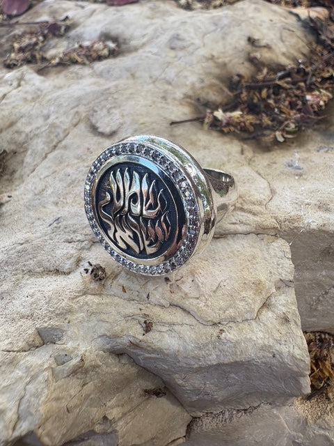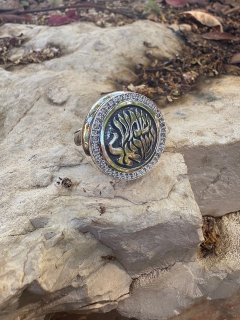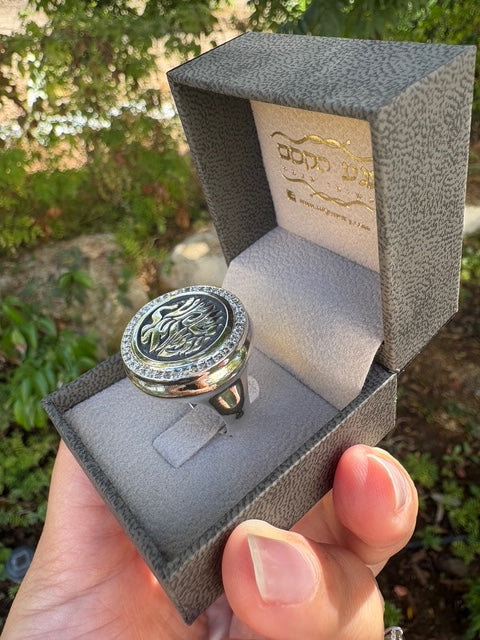 טבעת "שמע ישראל" מכסף 925 משובצת זירקונים לבנים
