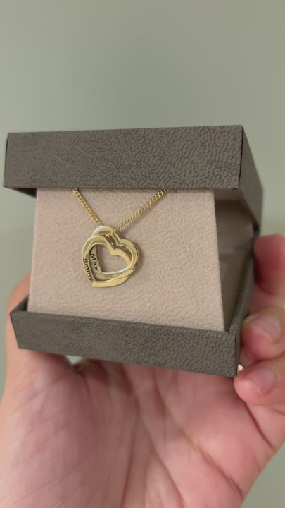 תליון זהב 14 קראט- שני לבבות מחוברים עם חריטת שמות אישית